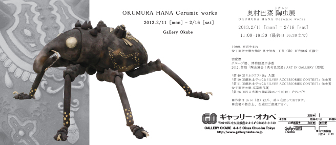 陶や銀で虫を作っている奥村巴菜の日々いろいろ。